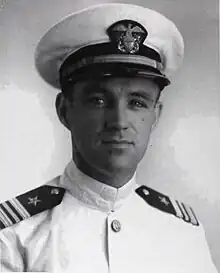 George Philip Jr. was born on 14 April 1912 in Fort Pierre, South Dakota, to George Philip (1880 – 1948), a Scottish immigrant from Morayshire, Scotland and Alice Island "Isle" Waldron (1890 – 1972), of part Oglala Lakota descent and also born in Fort Pierre. He was known as Geordie.[3] He attended the South Dakota School of Mines in Rapid City, South Dakota before his appointment to the United States Naval Academy. After completion of the course of instruction at the Naval Academy, he was commissioned an Ensign on 6 June 1935. He continued to progress in grade until his promotion to Commander on 4 September 1944. During this period he served under a variety of commands including: USS Mississippi (1935–37), USS California (1937–38), USS Ellet (1938–40), USS O'Bannon (1942-43). For his service during the Solomon Islands campaign, Philip was awarded the Silver Star Medal and O'Bannon received the Presidential Unit Citation.[4] He then served with Operational Training Command, Pacific Fleet, San Diego, California (1943–44).
