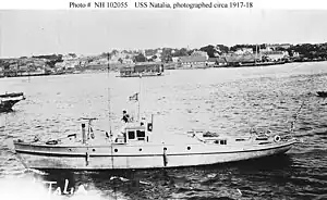 - ↑ Department of the Navy Naval History and Heritage Command Online Library of Selected Images: U.S. Navy Ships: USS Natalia (SP-1251), 1917-1918. Originally the civilian motor boat Natalia.