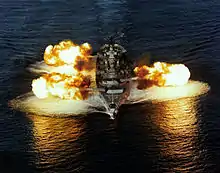 - 1 2 3 4 5 6 7 8 9 10 11 12 13 14 15 16 17 18 19 20 21 22 23 24 25 26 27 28 29 30 31 32 33 34 35 36 37 38 39 40 41 42 43 44 45 46 47 "USS New Jersey (BB 62) History". Dictionary of American Naval Fighting Ships. United States Navy. Retrieved 16 March 2007.
