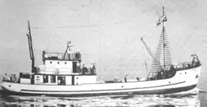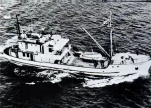Originally designed for exploratory fishing using longline and live-bait techniques to determine the distribution of tuna in the central Pacific, her role evolved over the years as she underwent modifications to better support the research of fisheries scientists and marine biologists as their understanding of tuna biology increased, and by 1960 she had become a marine research station capable of longlining, trawling, transporting live bait, and gathering oceanographic data.[1] In 1959, she became the only tuna-fishing vessel in the world outfitted with observation chambers incorporating underwater viewports, which gave embarked scientists an unprecedented ability to observe directly the behavior of tuna and bait fish in the water (rather than infer their behavior through statistical analysis ashore) and record the behavior for future study through the use of still photography and film.[1] She also gathered meteorological data and even made gravimetric observations in support of geophysical analysis of the Earth.