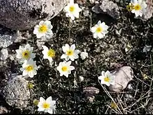 - Rose family (Rosaceae) - cinquefoil (Potentilla) or silverweed (Potentilla anserina or Argentina anserina), cloudberry (Rubus chamaemorus), mountain avens (Dryas octopetala) (flower of the Northwest Territories), snow cinquefoil (Potentilla nivea)