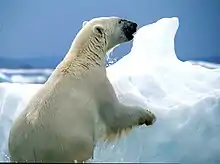 - Polar bear (Ursus maritimus) stepping on ice flow