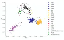 - ↑ Kushniarevich A, Utevska O (2015) "Genetic Heritage of the Balto-Slavic Speaking Populations: A Synthesis of Autosomal, Mitochondrial and Y-Chromosomal Data"