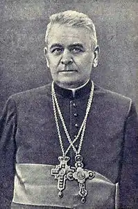 During the Interwar period, the Ukrainian community expanded to include several Rusyn leaders alongside the Ukrainian national movement, resulting in a division into two currents within the then Rusyn People's Educational Society (RNPD), founded in 1919, the first of which advocated preservation of the Rusyn national identity, while the other advocated the full integration of the Rusyns into the Ukrainian national corps. Under the influence of the then Greek Catholic bishop of Križevci, Dionisije Njaradi, who was a supporter of the ukrainization of all Rusyns (both Pannonian and Carpathian), local Rusyns were gradually removed from important positions in the RNPD, and pro-Ukrainian immigrants were appointed in their place.[16][17]