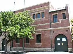 The front of the building addresses William Henry Street and is a symmetrical composition of face brick with sandstone dressings in three bays, the centre one treated as a breakfront accommodating as entrance porch. There are projecting sandstone string courses at first floor level, window sill level and transom level. The parapet has a row of vertical recessed panels on each side of a raised and panelled centre section, giving the breakfront the character of a triumphal arch. The entry bay has a round arch with bullnosed intrados and moulded stone imposts at window transom level. The entrance consists of a pair of original four panel timber doors with fanlight. The Pyrmont Street facade is divided up into three bays, all treated differently to reflect functions within the building. The south bay continues the front facade treatment and is dominated by the entrance lobby which is expressed by a bold frontispiece of rock faced ashlar sandstone above a sandstone plinth.[1]