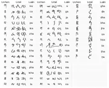 - Bêtsug (Tibetan: དཔེ་ཚུགས་, Wylie: dpe-tshugs), used for writing scriptures.