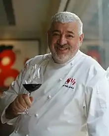 ![]() Umberto Bombana, at his restaurant 8 1/2 Otto e Mezzo Bombana | |