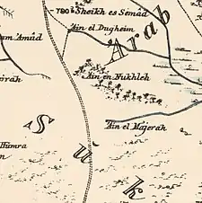 The village had three khirbas: Tall al-Shaykh al-Simad, Hajj Makka, and Sursuq.[3] In 1882, the PEF's Survey of Western Palestine found at Sheik Semad a "Small ruined Mukam of modern masonry".[4][5]