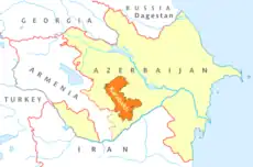 - ↑ Dawisha & Parrott 1997, p. 119: "A cease-fire was achieved in May 1994, after a decisive Armenian victory that included their occupation of approximately 20 percent of Azerbaijan's territory.".