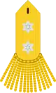 General staff, artillery, engineer and field officers wore bullion fringed epaulets: Generals with one or two five-pointed stars, depending on rank. Colonels, lieutenant colonels and majors plain gold (infantry: silver) epaulets. Captains a single epaulet on the right shoulder, lieutenants on the left shoulder.[8]