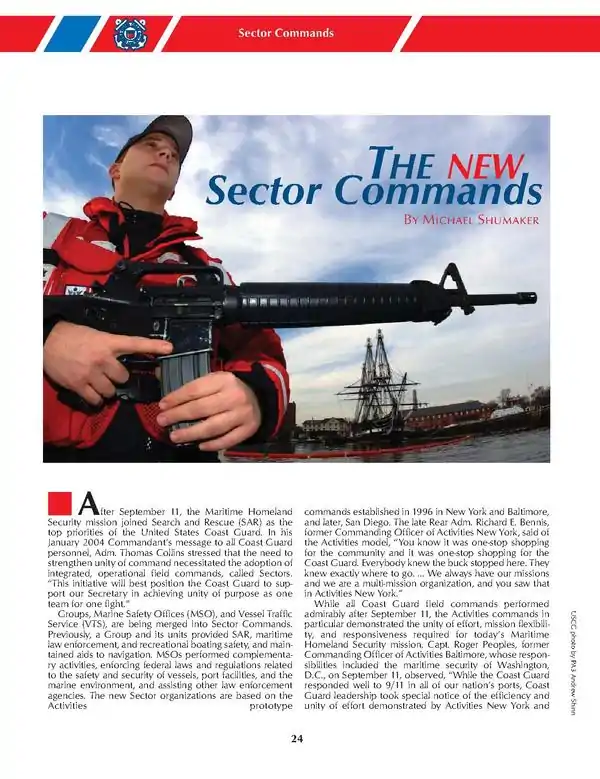 The Sector Command combines responsibilities and authorities previously shared by two or more commands into a single operational unit with a command and senior staff of highly competent experts.[1]