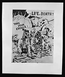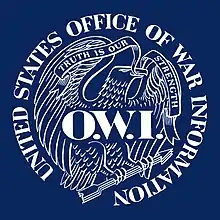 The United States Office of War Information (OWI) was a United States government agency created during World War II. The OWI operated from June 1942 until September 1945. Through radio broadcasts, newspapers, posters, photographs, films and other forms of media, the OWI was the connection between the battlefront and civilian communities. The office also established several overseas branches, which launched a large-scale information and propaganda campaign abroad. From 1942 to 1945, the OWI revised or discarded any film scripts reviewed by them that portrayed the United States in a negative light, including anti-war material.[1]