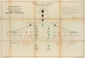 The United States Sanitary Commission (USSC) was a private relief agency created by federal legislation on June 18, 1861, to support sick and wounded soldiers of the United States Army (Federal / Northern / Union Army) during the American Civil War.[lower-alpha 1] It operated across the North, raised an estimated $25 million in Civil War era revenue (assuming 1865 dollars, $477.93 million in 2024) and in-kind contributions[1] to support the cause, and enlisted thousands of volunteers. The president was Henry Whitney Bellows, and Frederick Law Olmsted acted as executive secretary. It was modeled on the British Sanitary Commission, set up during the Crimean War (1853-1856), and from the British parliamentary report published after the Indian Rebellion of 1857 ("Sepoy Rebellion").[2][3][lower-alpha 2]