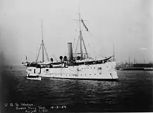 The United States had been interested in controlling Haiti in the decades following its independence from France.[11] As a way "to secure a U.S. defensive and economic stake in the West Indies", according to the United States Department of State, President Andrew Johnson of the United States began the pursuit of annexing Hispaniola, including Haiti, in 1868.[11] In 1890, the Môle Saint-Nicolas affair occurred when President Benjamin Harrison, on the advice of Secretary of State James G. Blaine, ordered Rear-Admiral Bancroft Gherardi to persuade newly assumed President of Haiti Florvil Hyppolite to lease the port to the United States.[12][13] Enforcing gunboat diplomacy upon Haiti, Gherardi aboard USS Philadelphia along with his fleet arrived in the capital city of Port-au-Prince to demand the acquisition of Môle Saint-Nicolas.[13] President Hyppolite refused any agreement as Haitians grew angered by the presence of the fleet, with The New York Times writing that the Haitians' "semi-barbaric minds saw in it a threat of violence".[12][13] Upon returning to the United States in 1891, Gherardi said in an interview with The New York Times that in a short time Haiti would experience further instability, suggesting that future governments in Haiti would abide by the demands of the United States.[12]