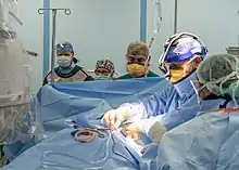 In early April, there was a widespread shortage of PPE, including masks, gloves, gowns, and sanitizing products.[77] The difficulties in acquiring PPE for local hospitals led to orders for gowns and other safety items being confiscated by FEMA and diverted to other locations, which meant that in some cases states had to compete for the same PPE.[78] Prices skyrocketed across the board, with PPE costing up to 10x more than normally.[79] The shortages led in one instance of a governor asking the New England Patriots of the NFL to use their private plane to fly approximately 1.2 million masks from China to Boston.[80] At that time, Veterans Affairs (VA) employees said nurses were having to use surgical masks and face shields instead of more protective N95 masks.[81] In May, Rick Bright, a federal immunologist and whistleblower, testified that the federal government had not taken proper action to acquire the needed supplies.[56]