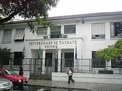 The University of Taubaté (in Portuguese; Universidade de Taubaté; UNITAU) is a municipal (partial city control) university located in the city of Taubaté, São Paulo state, Brazil. The institution is the largest and most traditional higher education college in the Paraíba Valley, State de São Paulo. It was established in 1973, gathering other pre-existing institutions and unifying them.