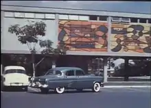The Modernist art is not only historically renowned, but was used to the benefit of propaganda in the 1956 American film Assignment: Venezuela, trying to encourage oil workers to move to Maracaibo. Jim is taken on a tour of Venezuela, and arrives at the then newly built campus in an imported car, admiring the murals and statues.[13]:97-98 In the film, he arrives in what would become Rectory Plaza, when it was still a car park.