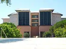 Murray Krieger Hall in the School of Humanities, named after an inspirational professor and an example of the Brutalist architecture of the campus