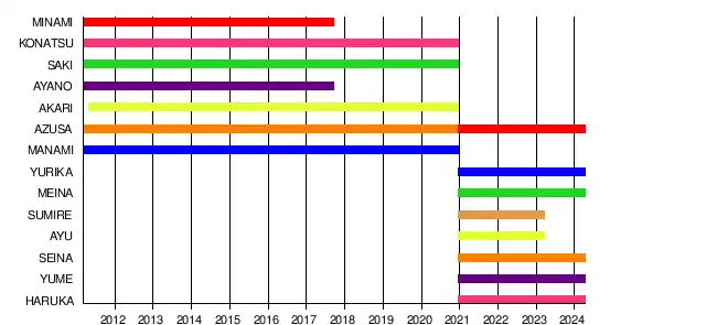 Past members | Minami Sengoku Ayano Satō Konatsu Furukawa Saki Mori Akari Saho Manami Arai Sumire Kudo Ayu Suzuki |