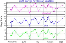 - 1 2 Malcolm, G. J.; Bell, S. A. (1986). "Evidence for pulsation in the hydrogen-deficient binary Upsilon Sagittarii". Monthly Notices of the Royal Astronomical Society. 222 (3): 543. Bibcode:1986MNRAS.222..543M. doi:10.1093/mnras/222.3.543.
