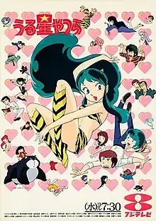 ![]() Promotional Fuji TV poster that features the main characters, with Lum, Ataru Moroboshi and Ten in a lead | |