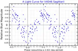 V4046 Sagittarii is a young binary consisting of two K-type main-sequence stars. The two stars are about 271 light-years (83 parsecs) away from the Earth.[4] The two stars orbit each other every 2.42 days on a circular orbit.[4]