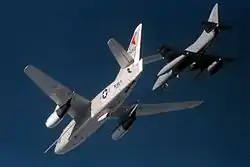 During its last dozen years, VAQ-33 continued a high tempo of operations supporting the fleet. It was one of the few U.S. Navy Squadrons to utilize 'autonomous maintenance units’ or ‘AMU’s. The AMU’s performed as specific type squadrons within the main squadron. AMU-1 performed maintenance on the A-3 Skywarriors (known as ‘Whales’). Between 1988 and until the retirement of the Whale, VAQ-33 became a clearing house for some A-3 aircraft to be evaluated prior to dispensation to Davis Mothan AFB or Museum. AMU-2 performed maintenance on the EA-6A and EA-6A Recap Electric Intruders. AMU-3 would perform maintenance on A-1 Sky Raiders, to be replaced by A-4 Sky Hawks, which was replaced by TA-7C and TA-7Z Corsair II aircraft. The TA-7Z Corsair II was an in-house avionics and airframe modification to support the squadrons electronic warfare mission, being capable of carrying a suite of electronic warfare pods. AMU-4 performed maintenance on P-3 Orion aircraft of several variants from P-3 (airframe #3) to P-3B which would go through Depot Level maintenance to convert it to the EP-3J being specifically made to support the squadron's mission. AMU-5 performed maintenance on F-4 Phantom II aircraft. AMU-6 performed intermediate level maintenance on the electronic warfare pods the aircraft carried. [2] The EA-6A became its only jet aircraft, while it retained three turboprop P-3 Orions. The squadron's success in its mission was shown by the establishment in 1983 of VAQ-34 at NAS Point Mugu and in 1991 of VAQ-35 at NAS Whidbey Island. Its role as an A-3 FRS ended with the retirement of the Whale in 1991. The electronic aggressor mission was eventually transferred to the Navy Reserve. The 2 EP-3J Orions were transferred to a Navy Reserve Squadron (Patrol Squadron 66 (VP-66)) to continue performing the electronic warfare aggressor missions. That was a new mission for VP-66 and the squadron's manning was increased in order to accomplish the new mission in addition to all the squadron's other missions.[3] VAQ-33 finally wound down operations during 1993. In keeping with its "last to fly this airplane" tradition, its EA-6As were the last of their kind retired from service. The squadron was disestablished on 1 October 1993.[1]