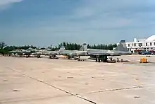 Following its inactivation, the role of VF-45 and other Regular Navy adversary squadrons was assumed by strike fighter and fighter composite squadrons of the Naval Air Reserve.[3] At NAS Key West, this role is currently executed by Fighter Composite Squadron ONE ELEVEN (VFC-111) flying the F-5N and F-5F.[4]