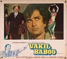 Vakil Baboo is a 1982 Hindi movie, produced by Jawahar Kapoor and P. K. Luthra and directed by Asit Sen.[1] The film stars Raj Kapoor alongside his younger brother Shashi Kapoor and also features Zeenat Aman, Rakesh Roshan, Rehman, Aruna Irani, Kader Khan. This was Raj Kapoor's last leading film role and was also the first and only time he appeared onscreen along with his brother Shashi Kapoor, not counting Aag & Awara, wherein Shashi Kapoor appeared as a child actor.