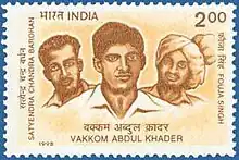 Vakkom Abdul Khader (1917–1943) was an Indian revolutionary and soldier in the Indian National Army, which fought for Indian freedom under Subhas Chandra Bose allied with Japan. Khader was a revolutionary and trained radio communicator. He was hanged in Madras Central Jail on 10 September 1943 with three comrades: Satyen Bardhan and Anandan and Fauja Singh. All three walked to their execution singing Vande Mataram.[1] Abdul Khader also shouted "Netaji Subhas Babu ki jai! Down with the British Government! Victory to India!”[2]