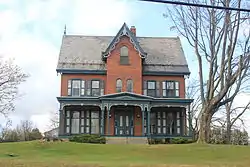 Built in 1876, this historic structure is a three-story brick dwelling that was created in the form of a Gothic Cottage. It has a central projecting pavilion on the front façade, a patterned slate roof, and a full-width front porch. Also located on the property are a brick octagonal outhouse, a brick smokehouse, a spring house, and an ice house.[2]