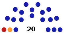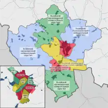 The newly formed Council of Deputies includes 25 persons, with 12 of them elected in twelve single-mandate constituencies, while 13 are elected in a single electoral district.[21] Among other things, the Council approves the local budget, manages state property, can establish and cancel local taxes and fees, assigns names to streets, and maintains the road network in the territory allocated to it.[22] It also has the right to create museums, higher educational institutions and create the necessary conditions for the national and cultural autonomies of the district.[23]