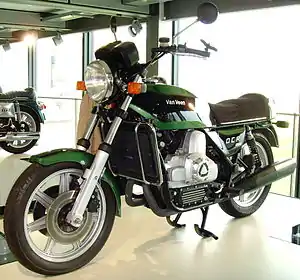 Van Veen completed its first prototype in 1974 using a 1000 cc Comotor 624 twin-rotor Wankel engine, and in November 1974 it was exhibited at the Cologne motorcycle show with front and rear cast wheels and triple Brembo disc brakes.[3]