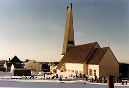 Vardø Church (Norwegian: Vardø kirke) is a parish church of the Church of Norway in Vardø Municipality in Finnmark county, Norway. It is located in the town of Vardø on the island of Vardøya. It is the main church for the Vardø parish which is part of the Varanger prosti (deanery) in the Diocese of Nord-Hålogaland. The white, modern, concrete church was built in a long church style in 1958 by the architect Eyvind Moestue. It has a high roof with a steep pitch, with a tall triangular steeple. The church seats about 432 people.[1][2]