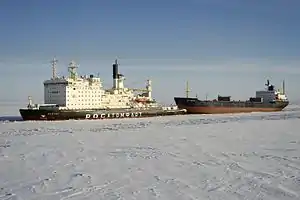 Vaygach (Russian: Вайгач, IPA: [vɐjˈɡatɕ]) is a shallow-draught nuclear-powered icebreaker. She was built in 1989 for the Soviet Union by Wärtsilä Marine Helsinki Shipyard in Finland by order of the Murmansk Shipping Company and its KL-40 reactor was installed at the Baltic Shipyard in St. Petersburg.[4] Her sister ship is Taymyr.