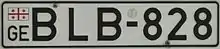 Vehicle registration plates of Georgia are composed of an embossed serial of two letters, a hyphen, three numbers, a hyphen, and two letters (e.g. AB-115-BA), in black on a white background with a blue vertical strip on the left.[1] The plates are issued in the Latin alphabet. Georgian registration plates are the same size as the most common European registration plate. All plates have the abbreviation "GE" in the lower left corner of the plate and the national flag in the upper left corner. This set of new style registration plates have been in use since 1 September 2014.[2]