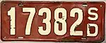 - ↑ "Old South Dakota License Plates". LeatherLicensePlates.com. Retrieved July 21, 2017.