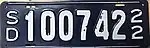 1922 | Embossed white on dark blue; lines at top and bottom borders; vertical "SD" and "22" at left and right respectively | none | 123456 | 30000 to approximately 150000 | |