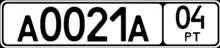 The modern Russian number was taken as a sample of the first Tajik numbers with the only difference - in the window of regional affiliation, instead of the code "RUS" and the Russian flag, the letter combination "RT" was written in small letters, there was no flag.