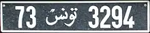 Tunisian vehicle registration plate allows the identification of vehicles registered in Tunisia.