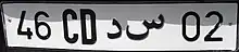 - Diplomatic Missions: in the form of "XX CD س د XX" (CD stands for Corps Diplomatique) or "XX MD ب د XX" (MD stands for Mission Diplomatique), writing in black on a white background.
