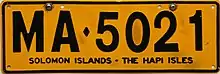 ![]() Current style registration plate from the Solomon Islands. |