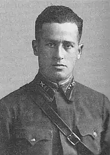 Veniamin Lvovich Beylin was born to Jewish parents on 25 August 1904 in Barvenkovo, Kharkov Governorate. The son of a railroad employee, Beylin graduated from primary school and worked on the railroad.[1] He joined the Red Army in September 1923 by volunteering as a cadet at the 4th Kiev Artillery School. After graduating from the school in October 1927, Beylin was appointed to the 80th Light Artillery Regiment of the 80th Rifle Division of the Ukrainian Military District at Artemovsk. With the regiment, he served as a platoon commander and acting battery commander, and as a battalion. In June 1931 he transferred to the Sumy Artillery School to serve as a battalion chief of reconnaissance. In December 1932 Beylin was appointed assistant chief of staff of the 24th Artillery Regiment of the 24th Rifle Division at Vinnytsia. Between May 1934 and October 1937 he received advanced training at the Frunze Military Academy, then served with the 100th Rifle Division of the Belorussian Military District as chief of staff of the 100th Artillery Regiment. He became chief of staff of the division artillery in April 1938 and a month later became chief of artillery of the division. From November 1938 Beylin served as chief of the 1st section of the artillery directorate and chief of artillery of the Vitebsk Army Group of Forces, then served in the same position at the headquarters of the North Caucasus Military District. He was sent to study at the Red Army General Staff Academy in December 1939.[2]