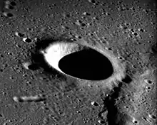 Very is a small lunar impact crater located in the eastern part of Mare Serenitatis, to the west-southwest of Le Monnier. It lies upon a wrinkle ridge that runs to the north and south named Dorsa Smirnov. It was named after American astronomer Frank W. Very.[1] The crater was previously known as Le Monnier B, a satellite crater of Le Monnier, before being renamed by the IAU in 1973.[2]