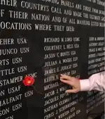 An additional 2,500-pound (1,130 kg) base and 5,000-pound (2,270 kg) panel were added in 2005 to provide space for those killed in Iraq and Afghanistan, but it became clear that the single panel would not be sufficient, based on the course of the war, so one more was added prior to the Memorial Day ceremony in 2010, the 15th anniversary of the monument. Ten names were added in 2010, four of which are on the most recent panel, which brings the total number to over 1,600. Four more names were added in 2014.[4]