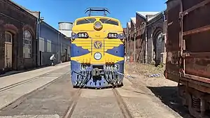 - L1169 is owned by Steamrail Victoria and is currently stored. It was used as a prop for the 2007 movie Ghost Rider and specially painted in a Texas Eagle livery for the film production.[23] As of March 2020, the Texan Eagle livery has finally begun to fade, revealing the V/Line orange and grey underneath. A few months later it was repainted into an orange with yellow stripe livery for the Apple series Shantaram.