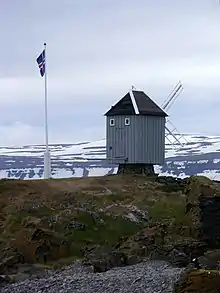 A windmill, built in c. 1840, is also located on the island.[2] It is the only surviving historic windmill in the country and possibly the northernmost windmill in the world.