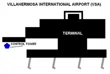 Villahermosa International Airport (Spanish: Aeropuerto Internacional de Villahermosa); officially known as Aeropuerto Internacional Carlos Rovirosa Pérez (Carlos Rovirosa Pérez International Airport) (IATA: VSA, ICAO: MMVA) is an international airport located in Villahermosa, Tabasco, Mexico. It serves the Metropolitan Area of Villahermosa, the entire State of Tabasco, and Northern Chiapas. The airport offers domestic flights within Mexico and supports various tourism, flight training, and general aviation activities. It is named in honor of Carlos Rovirosa Pérez, a pioneer of Mexican aviation, who was born in Villahermosa. The airport is operated by Grupo Aeroportuario del Sureste (ASUR). In 2021, the airport handled 976,456 passengers, and in 2022, it served 1,214,190 passengers, according to ASUR.[1]