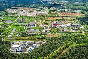 Vilnius Combined Heat and Power Plant's capacity is 603 MW heating power and 360 MW electric power.[1] It is the most polluting electric power plant in Lithuania.[2] As a consequence, Vilnius Combined Heat and Power Plant was closed in 2016.[3] In 2016 a new waste-to-energy Vilnius Biofuel Power Plant was built next to the CHP plant.