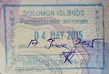 Holders of passports of the following countries and territories may enter Solomon Islands with a free visitor permit on arrival for up to 3 months within any 1-year period:[4][5]